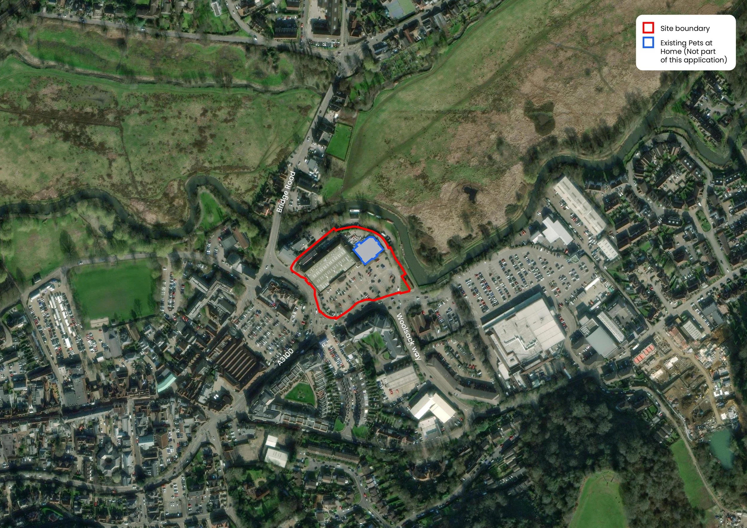The site is located at 1 Woolsack Way, Godalming, adjacent to the town centre and next to Flambard Way and the River Wey. The site benefits from strong transport links and is within easy reach of nearby residents by car, foot, cycle or public transport. The existing bus stop along Flambard Way, located adjacent to the store, will be retained - ensuring continued easy access for those travelling by bus. The existing Pets at Home will remain on site and continue to trade as normal.
